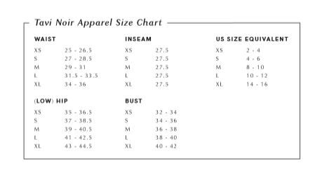 Niet zeker welke maat Tavi Noir crop tee je moet kopen? Kijk in de onderstaande maattabel welke maat tanktop je het beste kunt bestellen.